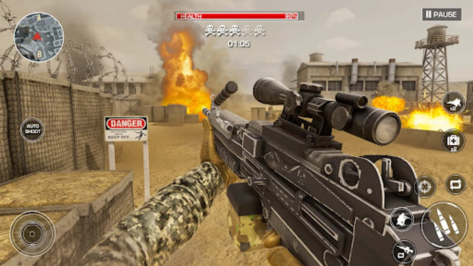 This is call of war! Bring on the heavy gunners and jump into the fire battle! Exciting offline shooting gun game with epic range of heavy war arsenal. You will experience real FPS commando shooter thrill in counter terrorist strikes with challenging fps strike shooting games of 2023.