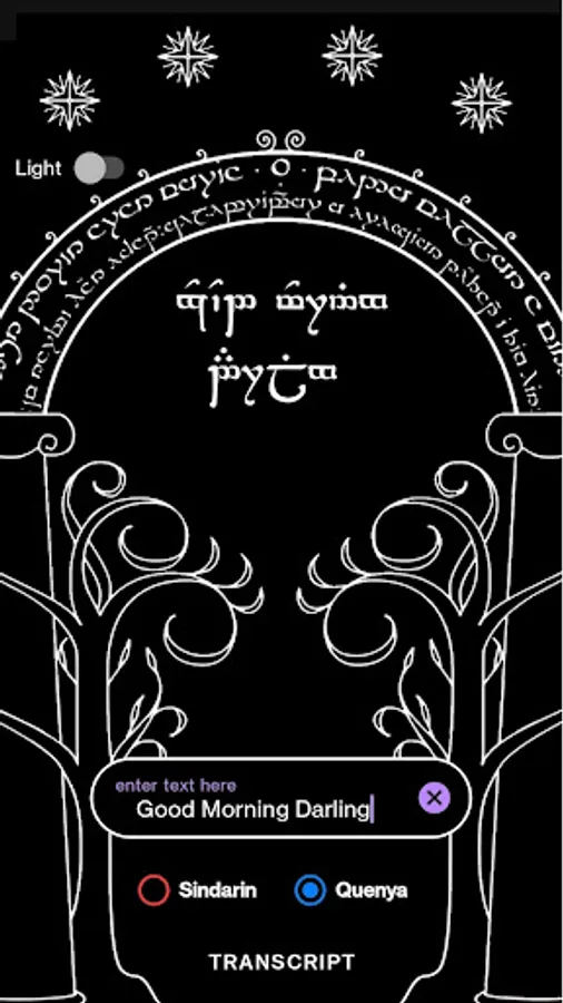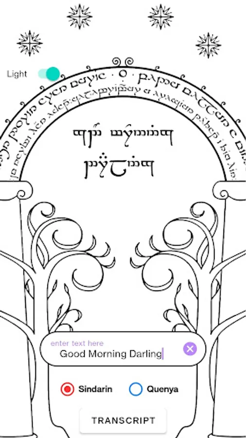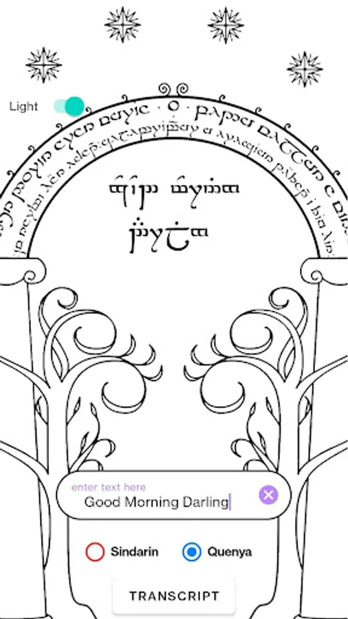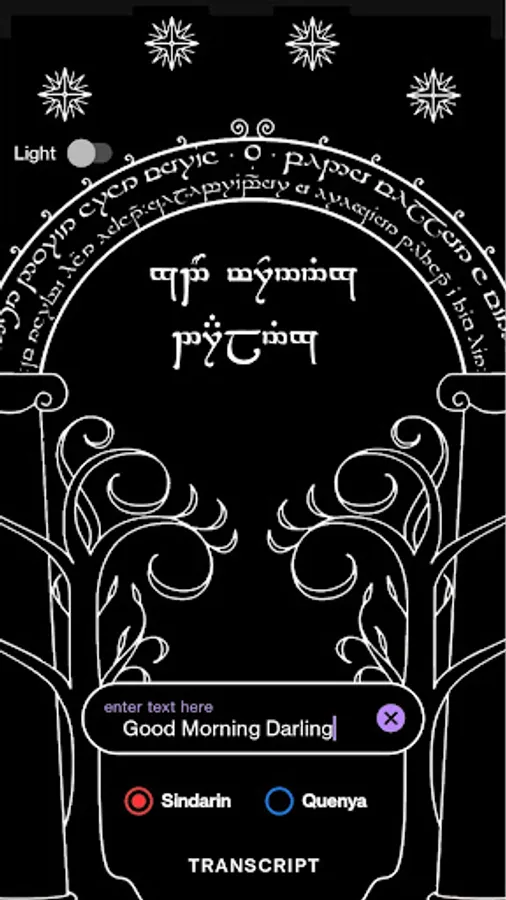In this app you can write what you want and transcribe it into two Tengwar modes: