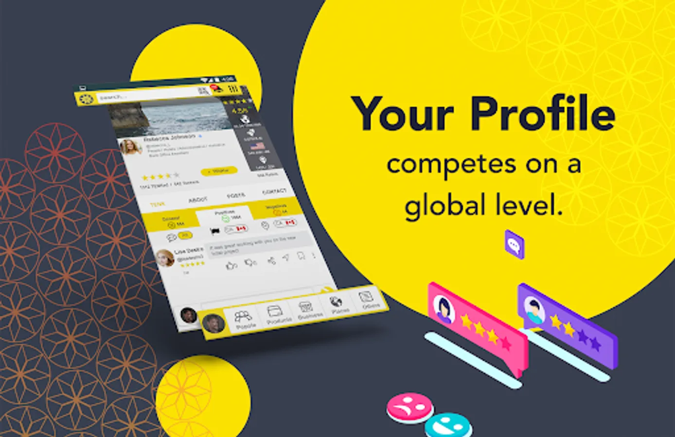 • Creating and receiving ranks and ratings between others in your city, country or even globally
