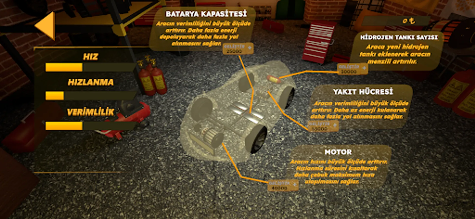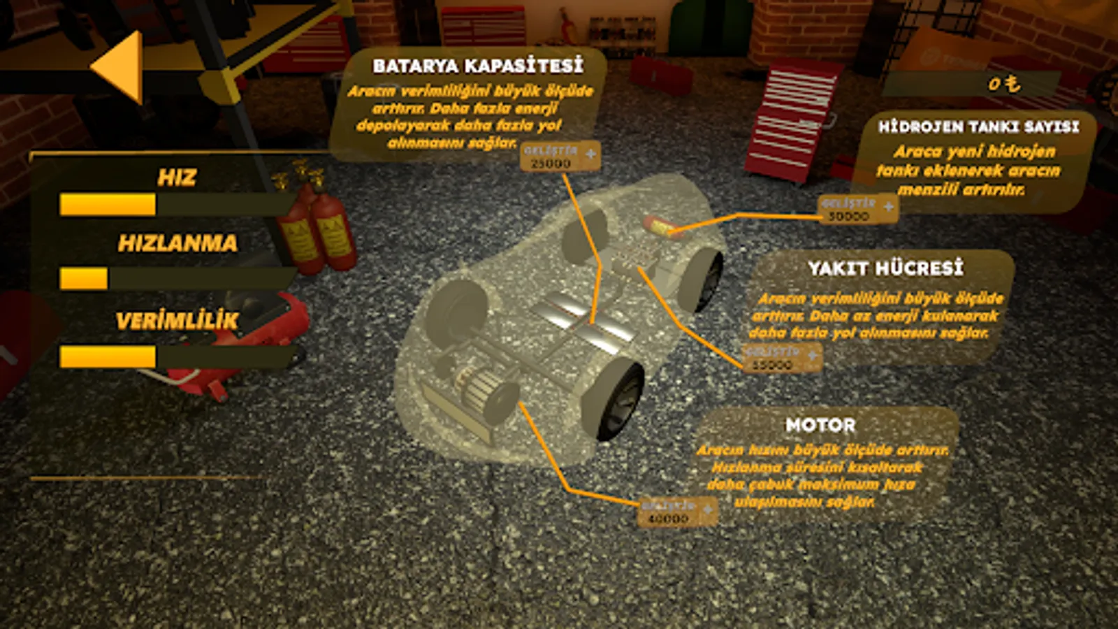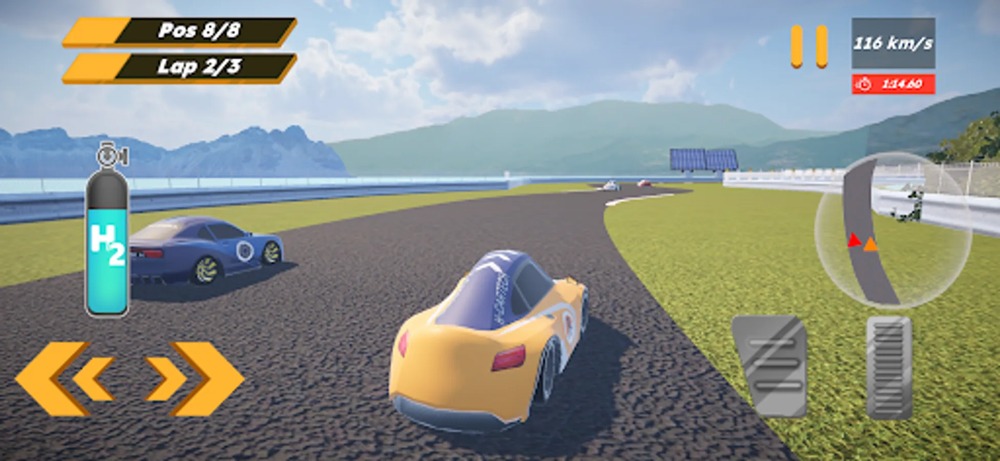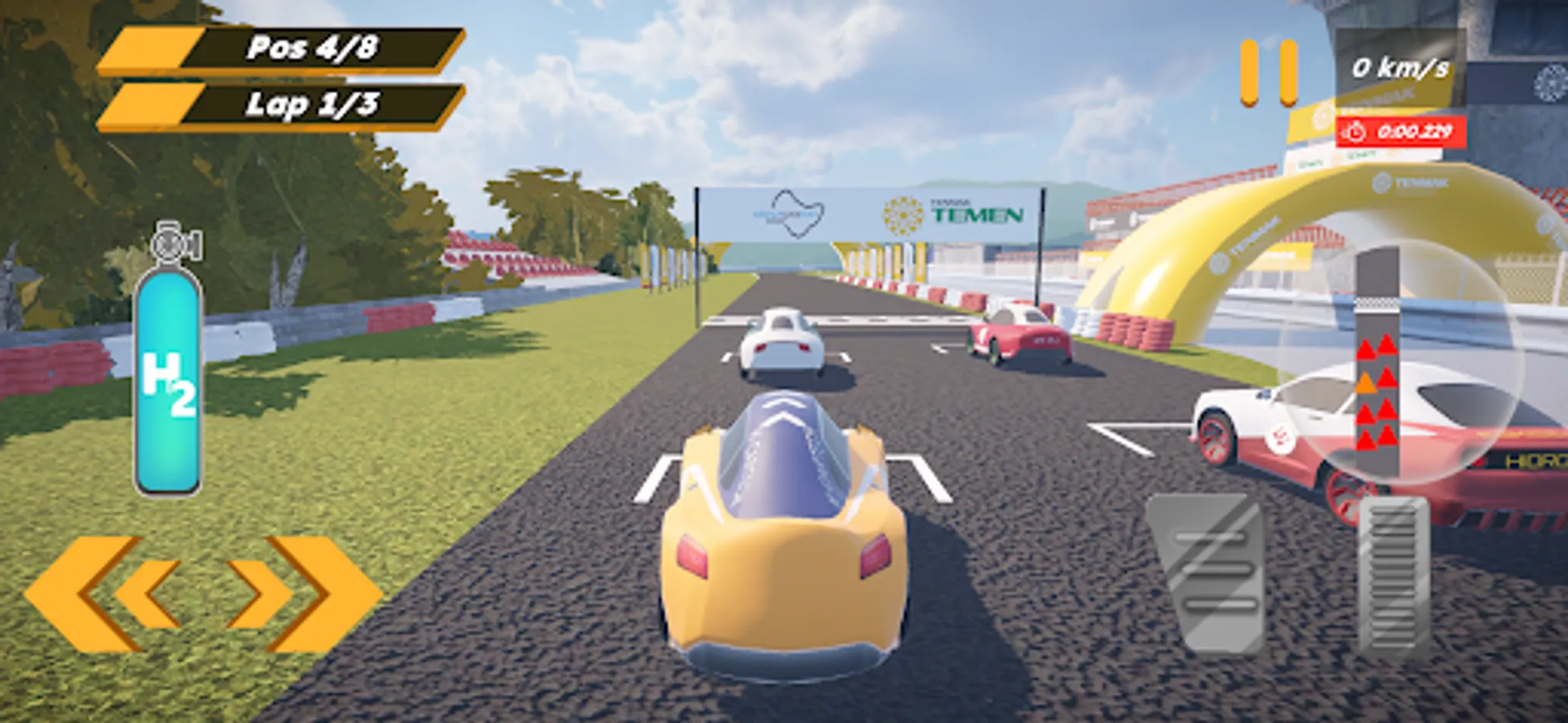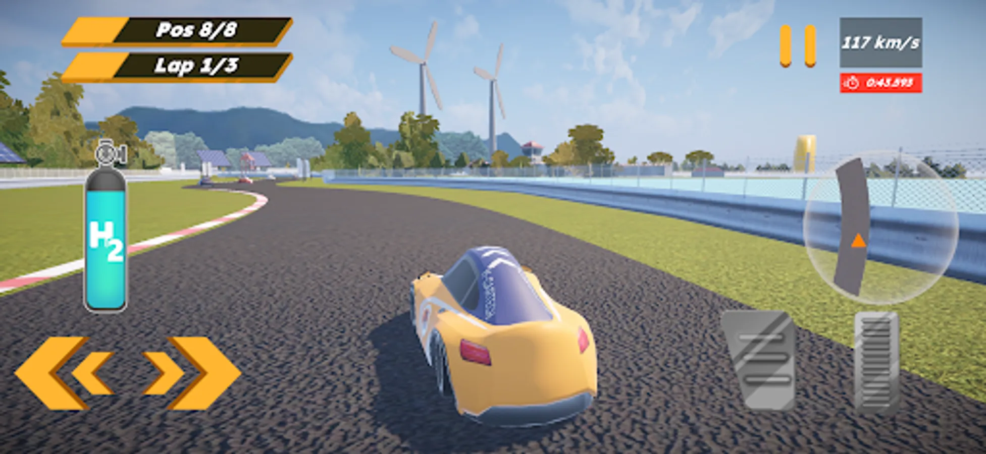Racing game prepared for TENMAK Efficiency Challenge. It is designed to explain the use of alternative and clean energy source hydrogen in vehicles and to introduce this clean energy.