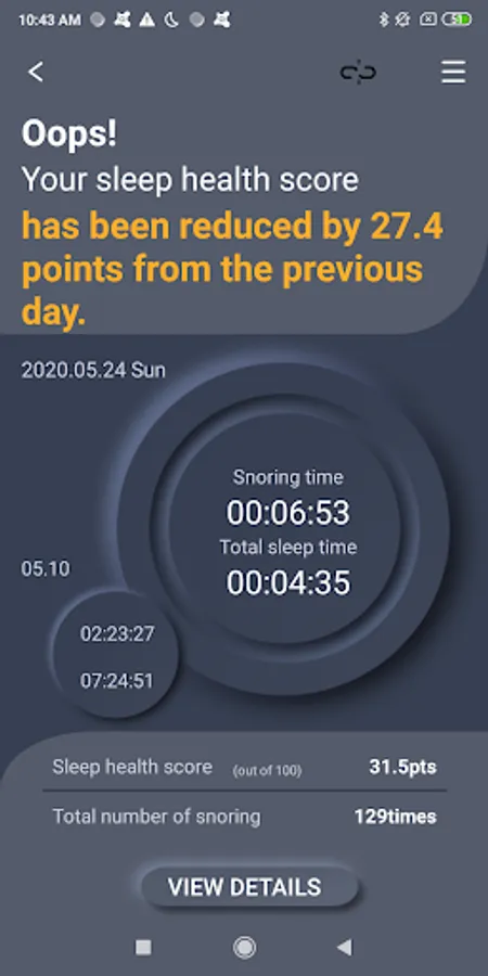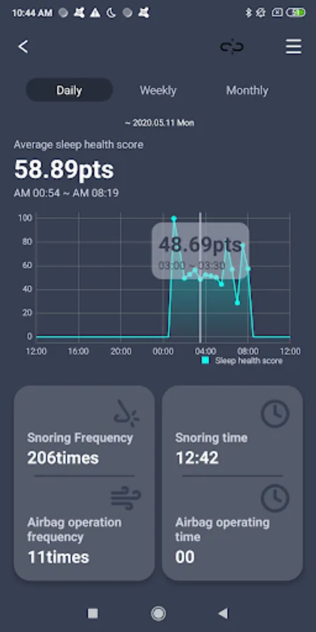 - This App takes the user's snoring data from the device and displays it as statistical information such as graphs