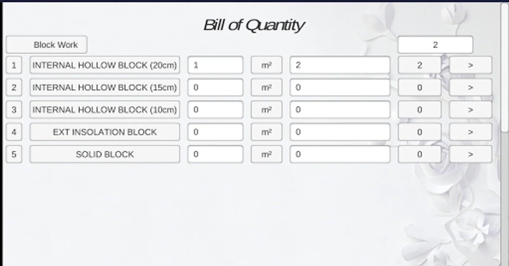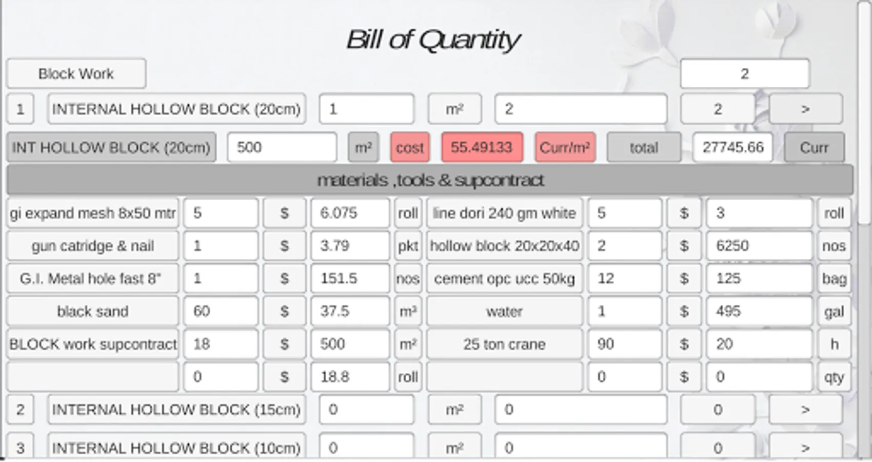 this app is just part of Bill Of Quantity, which only include block work.