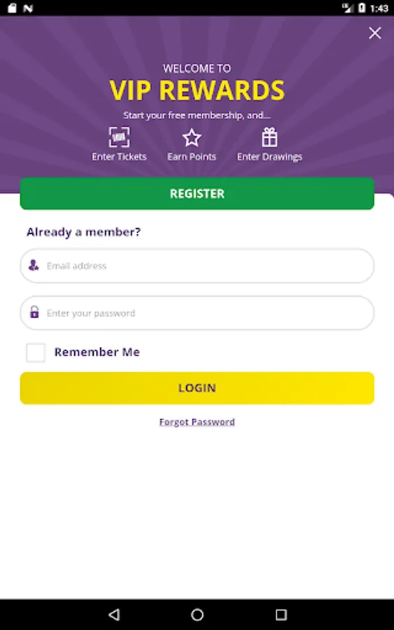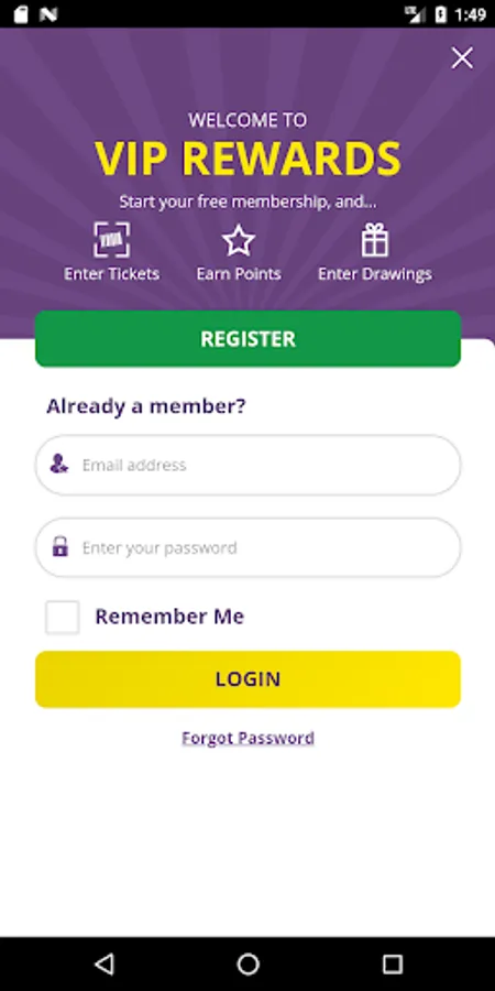 • Access your VIP Rewards Account to enter tickets, earn points and enter drawings