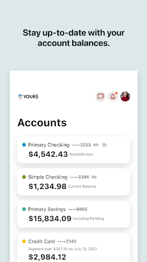 TVFCU’s YOUR$ presents a modern, seamless account experience with easy to find features and customizable navigation to manage your accounts on your computer, your phone, your tablet, or any smart device.