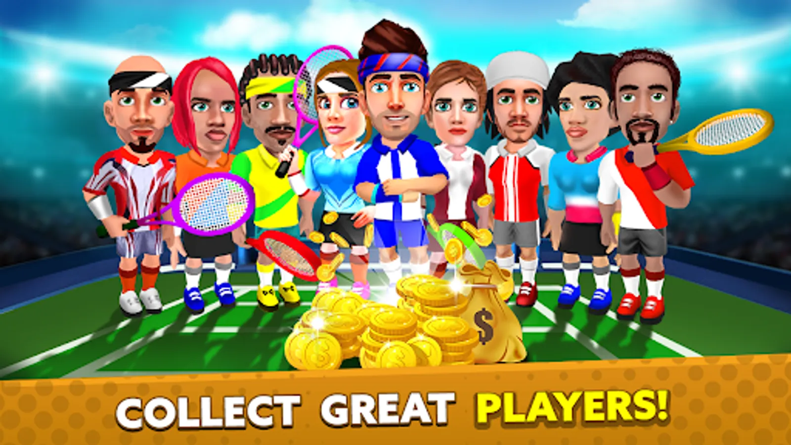 🥇Customize your player with unique gear and build your mini tennis legend.