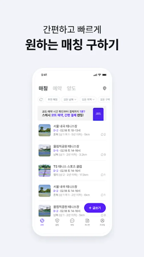 스매시 : 테니스 친구찾기, 매칭, 예약, 레슨, 클럽
