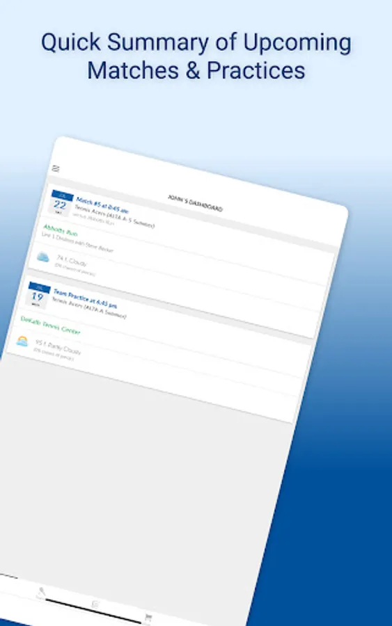 * Team Schedule -- dates and locations of all your matches with a summary of points after the match.