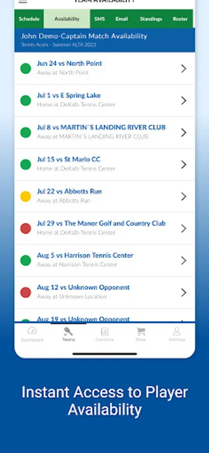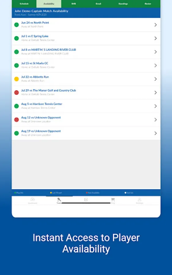 * Match Availability -- set your availability for each match with a single click. View the availability of your other players as well for that match.