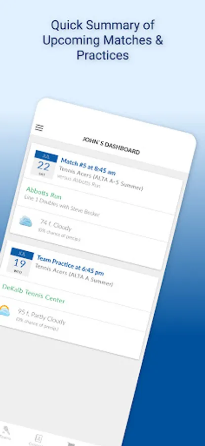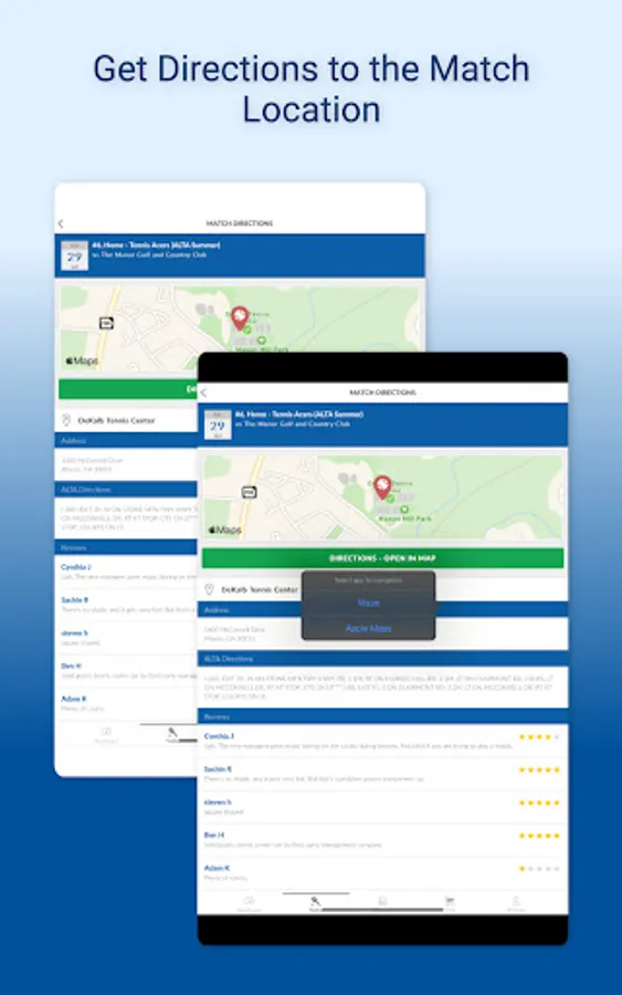 * Match Directions -- know exactly where you are going for your upcoming match. ALTA specific directions and other player reviews are also included.