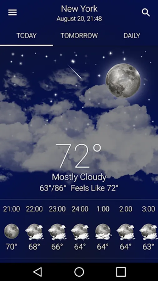 Is almost like you look out of the window The application changes based on the time of the day, current location and weather condition to show you the current weather.