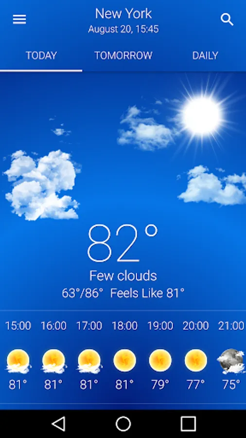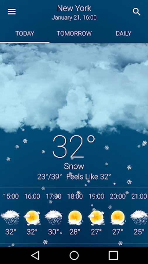 Stunning animations The current weather is presented using stunning realistic animations, for weather conditions like rain, thunderstorm, snowing, cloudy and others. Even if the weather is bad, the animations are beautiful :).