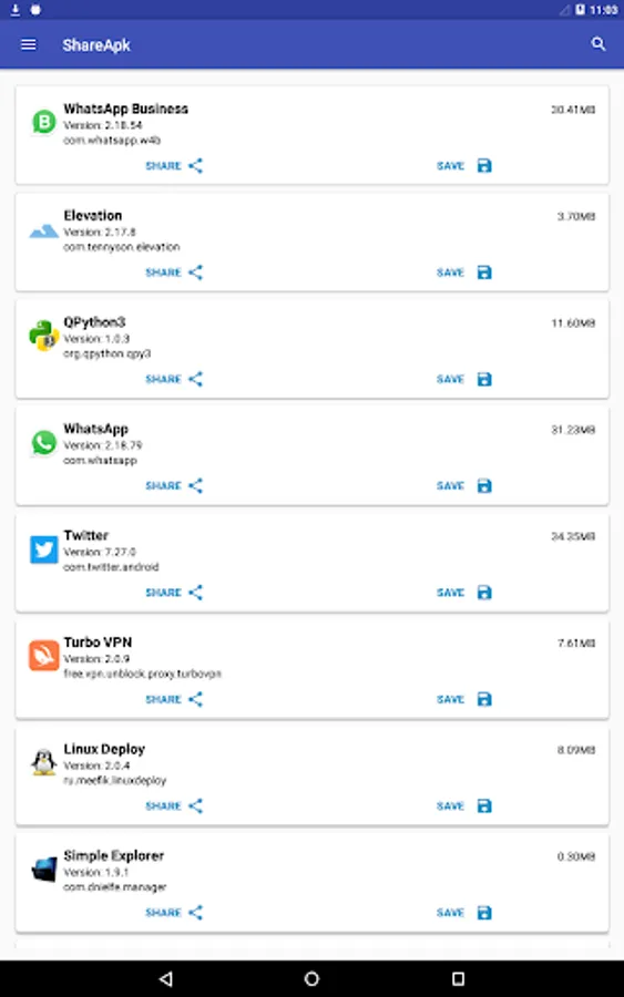 Share Apk is tool for extracting, sharing and creating backups of installed apps.