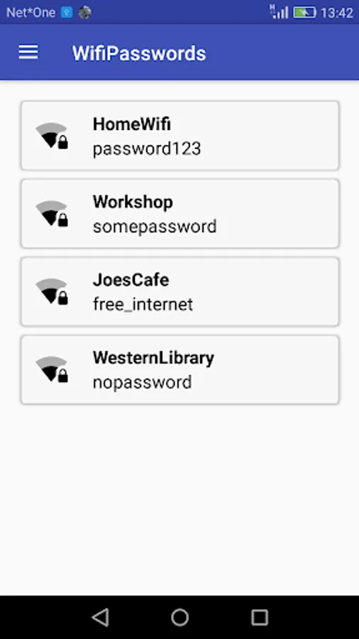 Retrieves saved names and passwords for wifi access points you have connected to in the past.