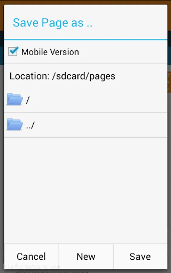 Android 6+ users: In order to access the contents of the internal storage from within the "Save Page as .." application, you need to turn on the access storage permission manually. Go to the Settings -> Apps -> Save Page as .. -> Permissions and turn on "Storage" permission.