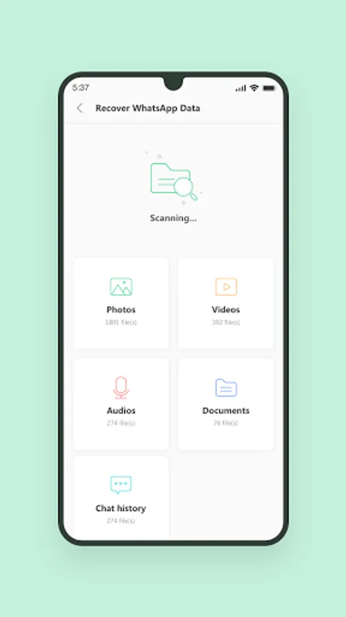 Any file: Retrieve any file you need including WhatsApp messages & attachments photos, videos and audio files in no time.