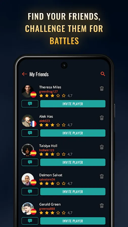 - play in live 1x1 battles with your friends from all over the world in real time,