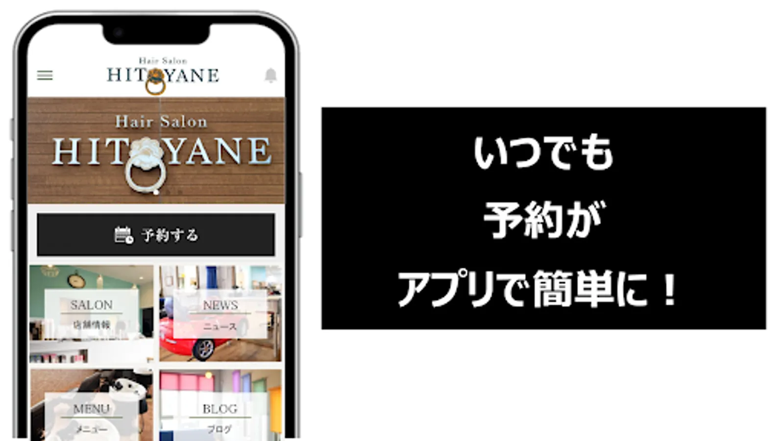 This is the official app for the hair salon "Hair Salon HITOYANE" in Midoridai, Chitose City.
