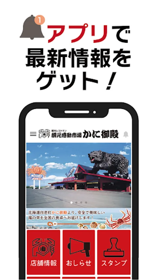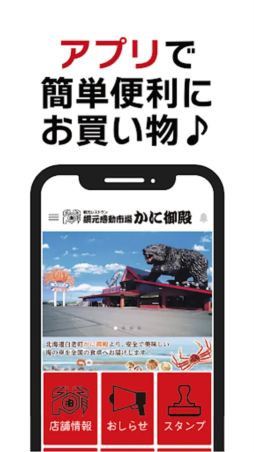 This is the official app of "Kani Goten" in Shiraoi-cho, Hokkaido.