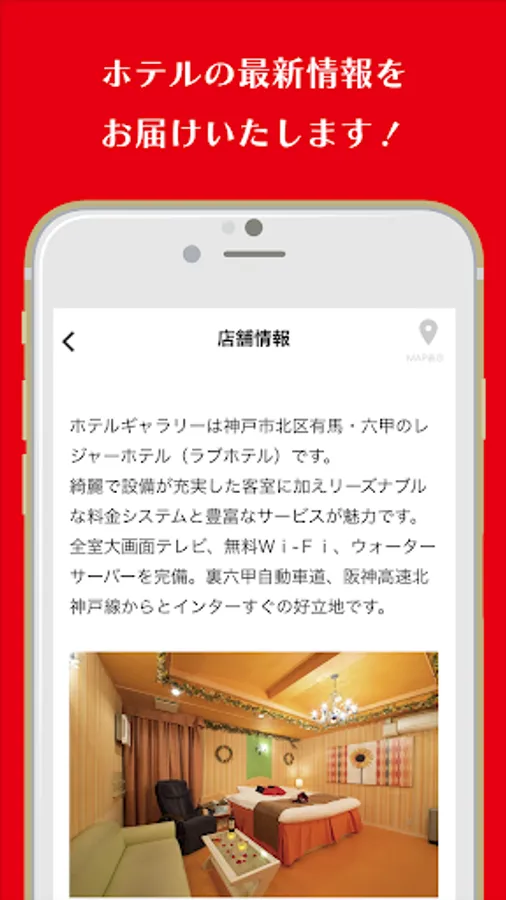 This is the official app of Hotel HOTEL Gallery in Kita-ku, Kobe City, Hyogo Prefecture. We deliver the latest information from the app.