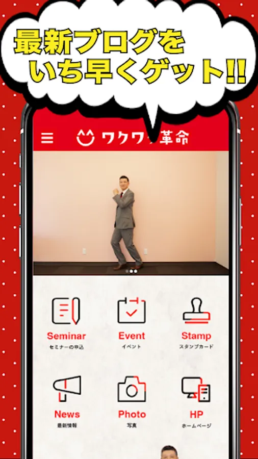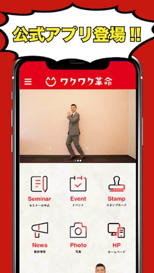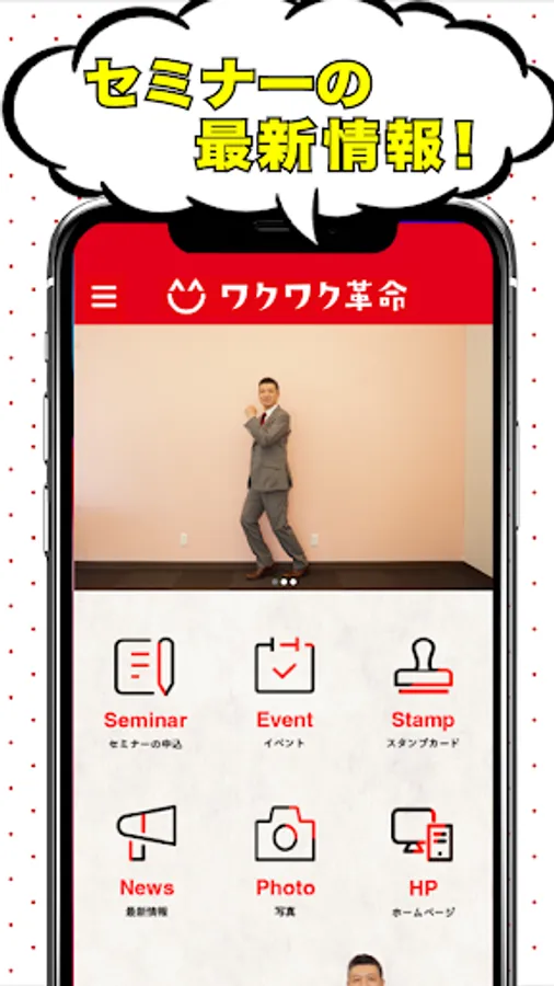 The "Waku Waku Revolution" official app provides the latest information on seminars and events, as well as special coupons limited to the app.