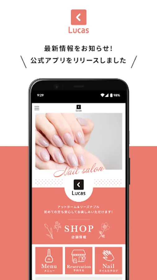 This is the official app of "Lucas Nail Salon" located in Shimohara, Higashi-ku, Fukuoka.