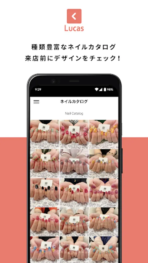 Check out the wide variety of nail designs in the app! You can decide the design before coming to the store.