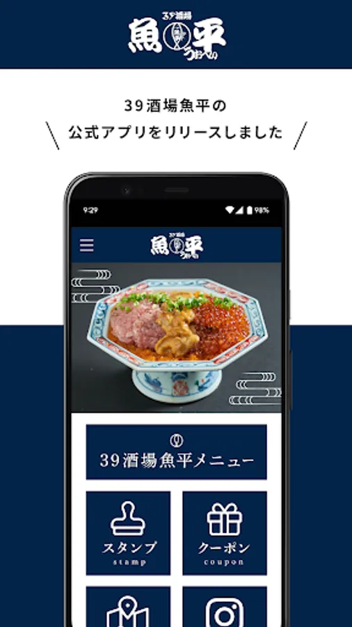 We also distribute coupons limited to the official app of "39 Tavern Uohira".