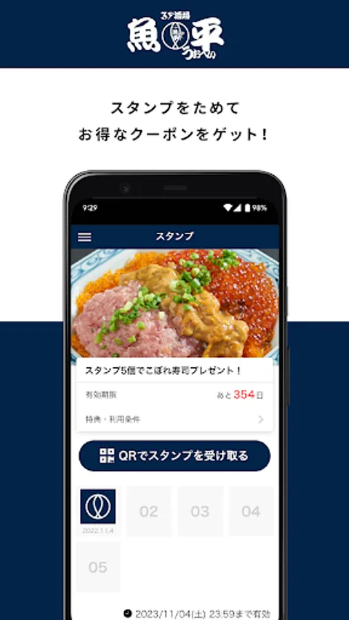 A stamp card function is also installed in the app! If you collect stamps by using "39 Tavern Uohira", a special complete ticket will be issued.