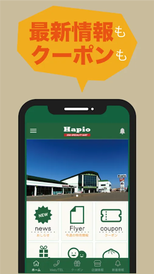The Hapio Kino official app delivers special sale leaflets, the latest information on stores, and discount coupons at any time.