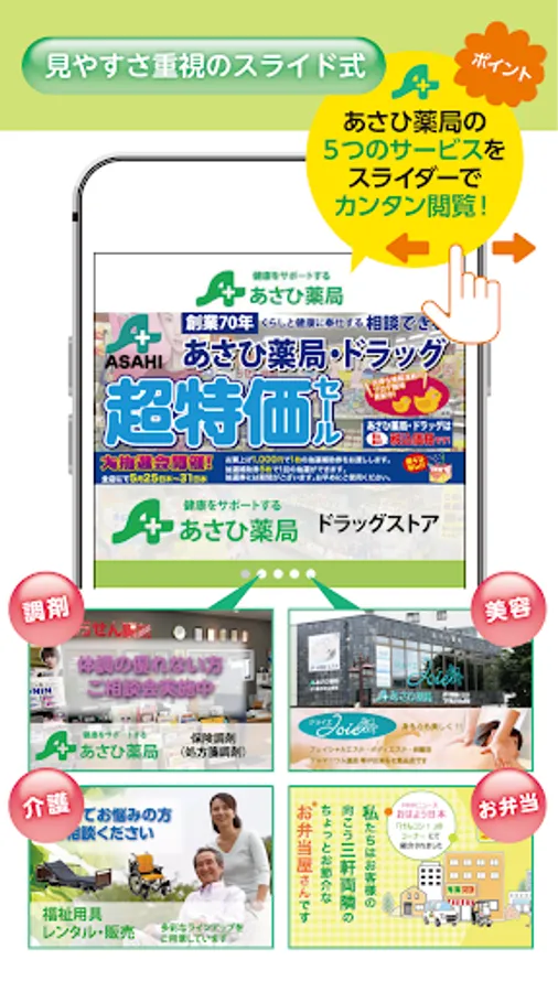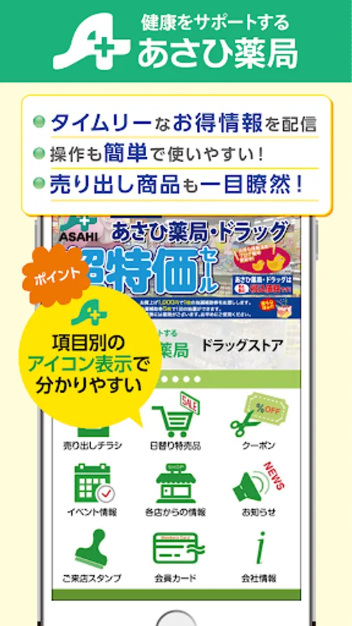 地域の情報満載のあさひ薬局アプリがあればイベントやお買物にお得な情報が得られます、是非ご活用ください。