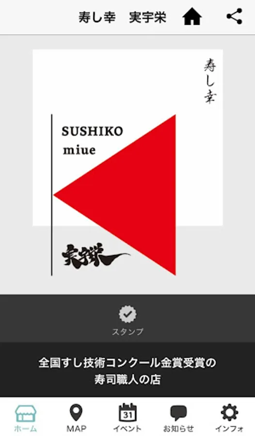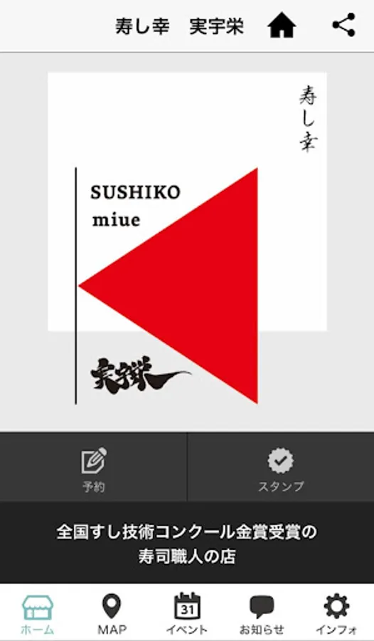 It is the official app of the sushi chef shop "Sushi Kou real 宇栄".