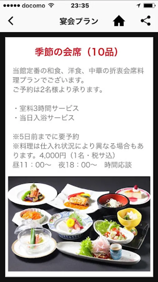 日帰り温泉としても人気が高く、会席料理も楽しめる各種宴会の利用はもちろん、四季折々の風景が楽しめる宿としても大好評。