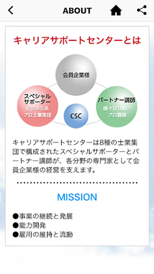 8 species of special supporter and partner instructors made up of Shigyo population, is the official app of supporting the corporate management from the face of the "human" [Career Support Center] as an expert in each field. New information about the newsletter and seminars that can be read in three minutes, or can be received in real-time push notifications, you can see the point and flow of the seminar. Human resource development and capacity development that is based on the most important advice and management plan of that business to continue to provide the best training services.