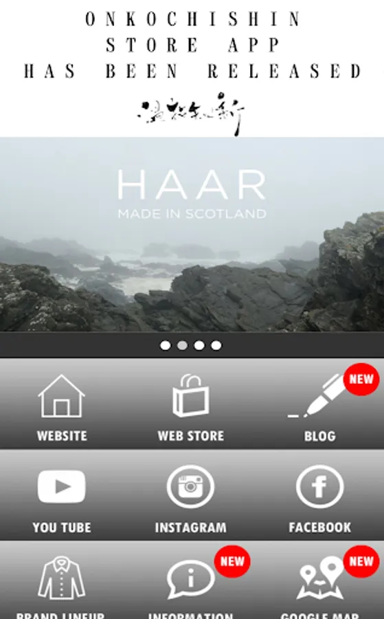 温故知新 アプリではWEBSHOPとBLOGの更新、YouTubeの動画投稿などをいち早くお知らせし、お客様が魅力あるアイテムにすぐにアクセスできるサポートアプリです。