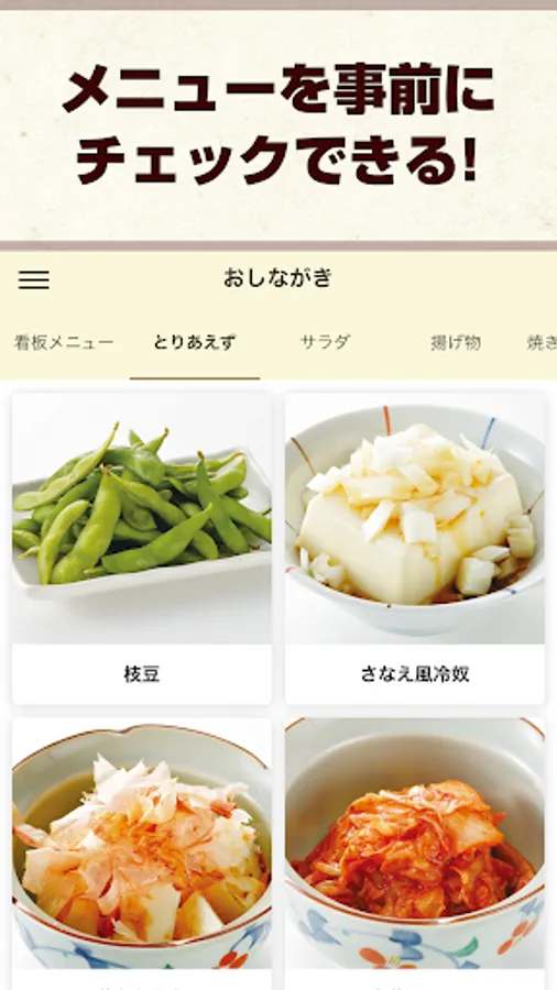 This is the official app of "Sanaenchi", a izakaya in Aiko, Atsugi City, Kanagawa Prefecture.