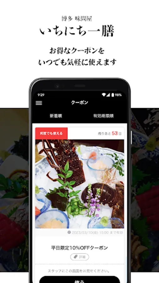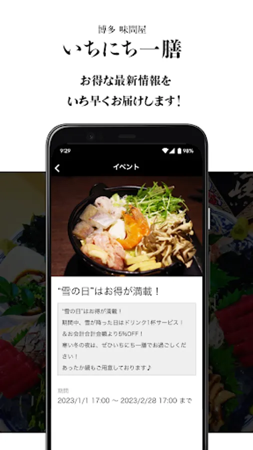We also distribute coupons limited to the official app of “Ichinichi Ichizen”.