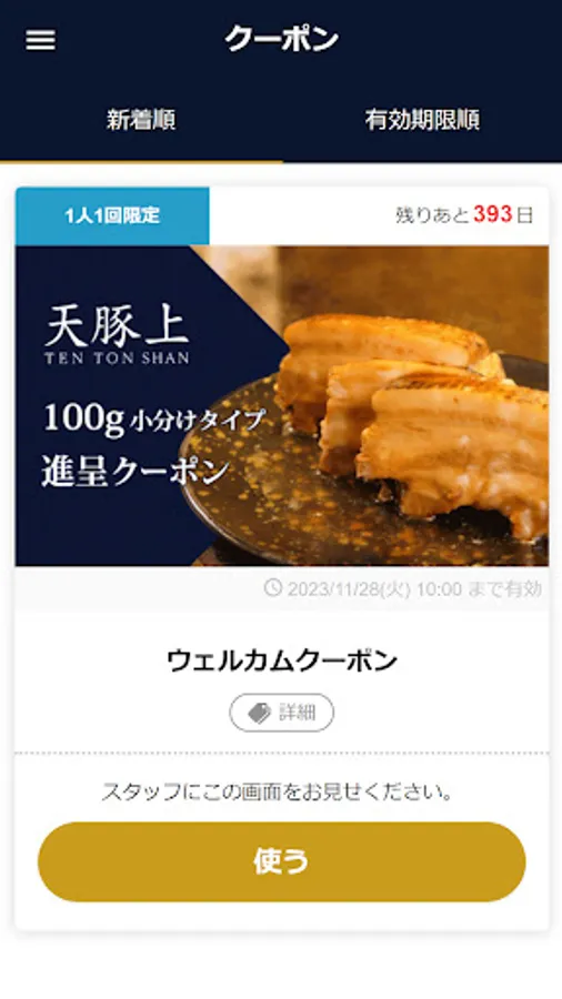 The official app of "Tenyu" distributes the latest information and special coupons limited to the app from time to time.