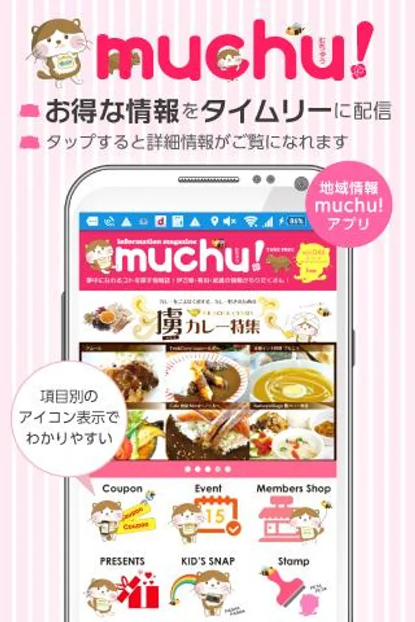 地域の情報満載のmuchuアプリがあればイベントやお買物にお得な情報が得られます、是非ご活用ください