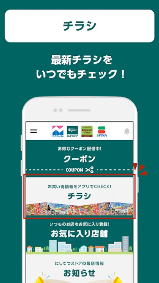 ◆ Special sale information, leaflets and coupons for "Nishitetsu Store", "Leganet", "Leganet Cute", "Leganet Marche" and "Spina" are distributed at any time.