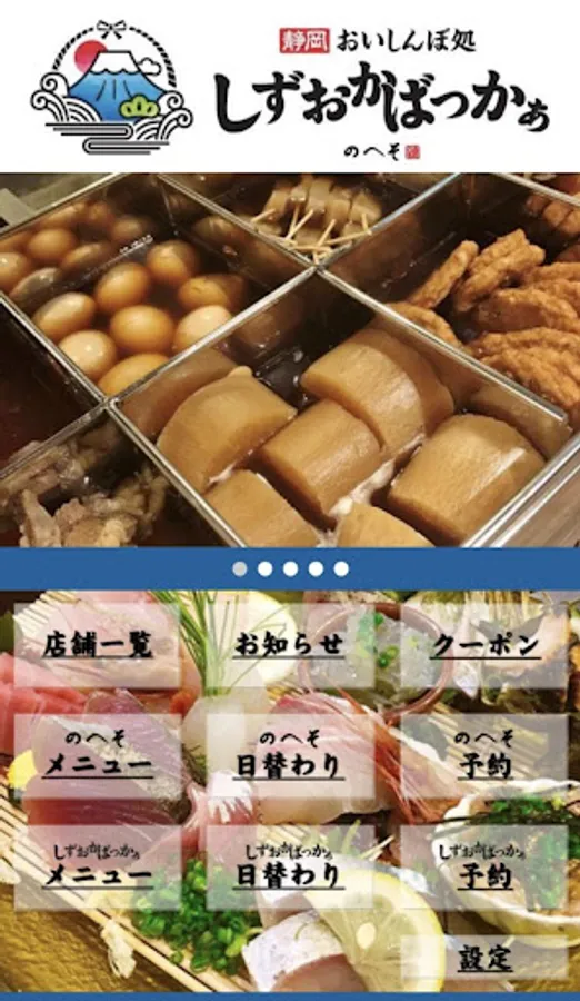 静岡駅前の居酒屋『魚のへそ』『宴のへそ』『しずおかばっかぁ』の公式アプリです。