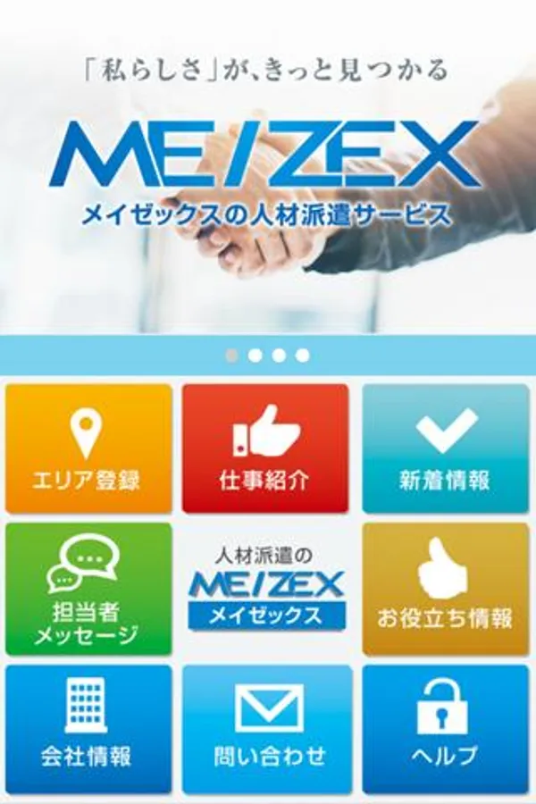 福島県・栃木県・茨城県での派遣のお仕事探しや求人検索に強い【人材派遣会社・メイゼックス】の公式アプリです。あなたの希望のエリアの新着情報を、プッシュ通知でリアルタイムに受け取ることができたり、派遣登録の流れや履歴書の記入方法など、採用活動のポイントを確認できます。株式会社メイゼックスは福島県(白河営業所・会津採用センター)・栃木県(大田原採用センター)・茨城県(水戸採用センター)に拠点を持った人材派遣会社です。派遣でお仕事されることが初めての方でも担当者がしっかりサポートいたしますので安心してお仕事していただくことができます。また「短・長期のお仕事」や「未経験者歓迎の簡単なお仕事」から「専門的なお仕事」など、あなたにあった働き方をご提供いたします。