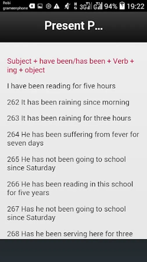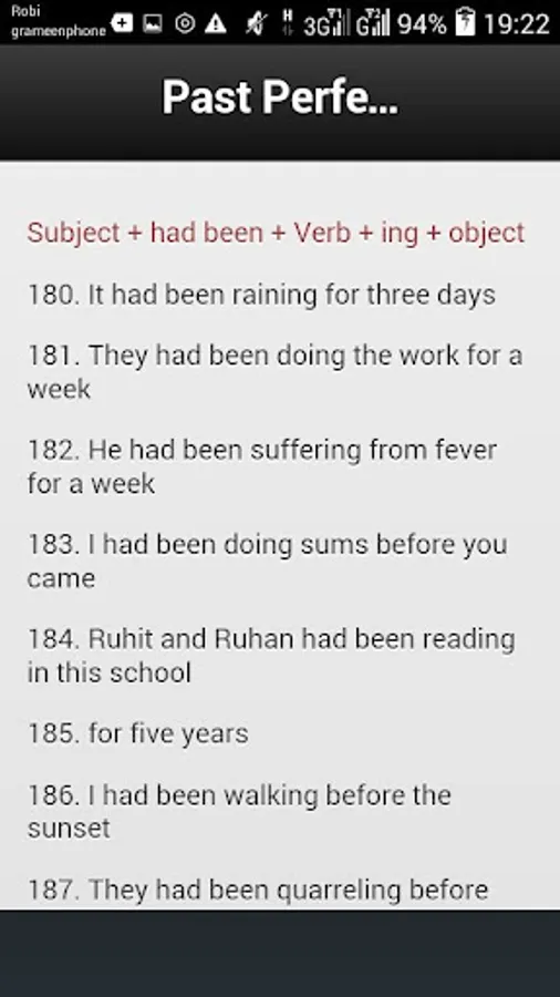 This android have more than 500 tenses examples. It is true that practicing any subject or lesson, example carry most effect on realizing the subject. English tenses has many formula or methods, if you exercise with this apps as many examples then it will be so helpful for every English learners.