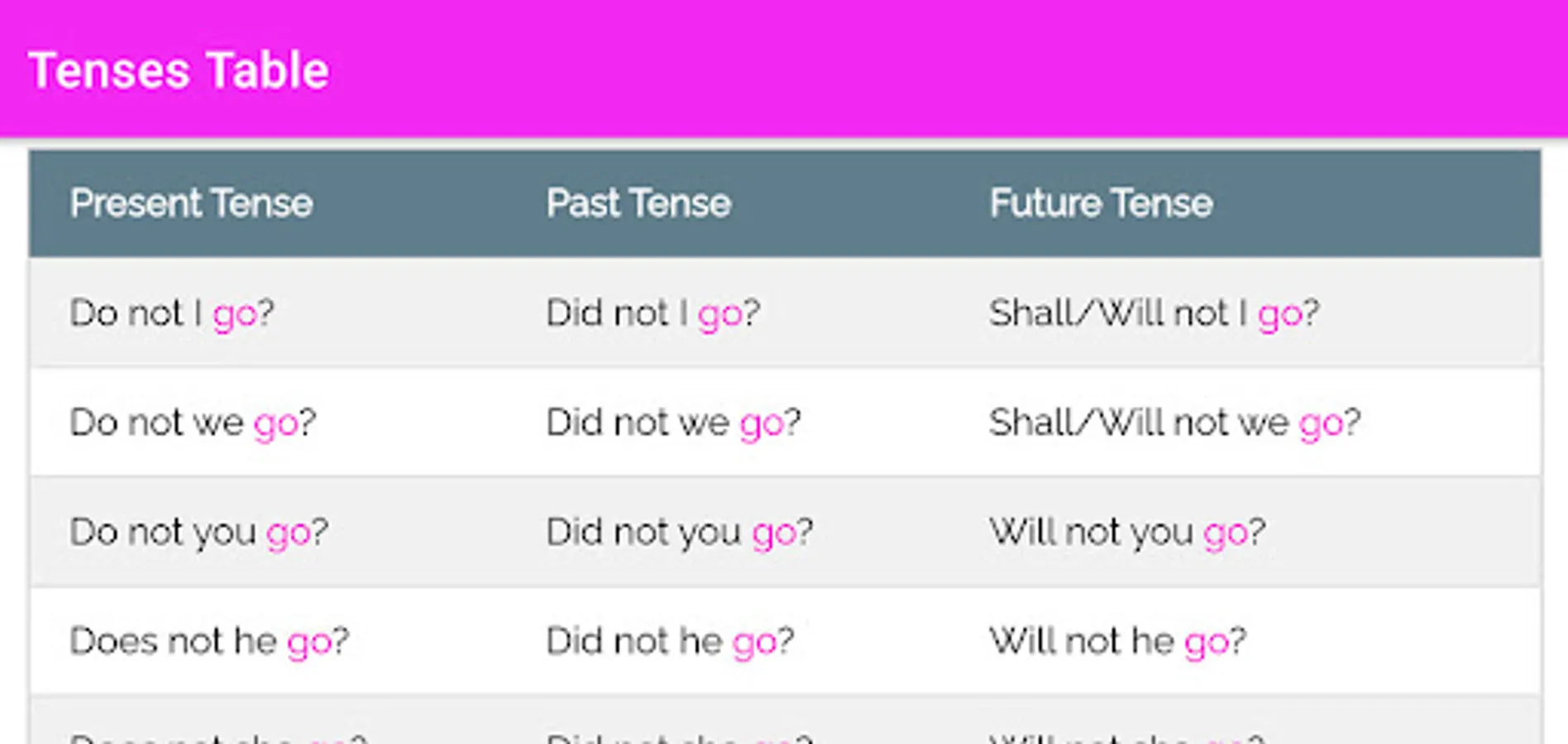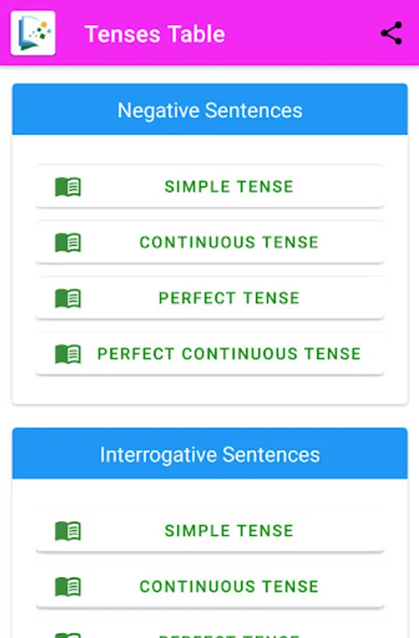 Here, you can learn 12 tenses in table format with present, past and future tenses.