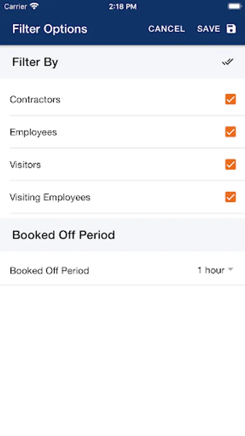 • the app also displays a refreshable list of employees who have booked OFF site within a configurable time period.