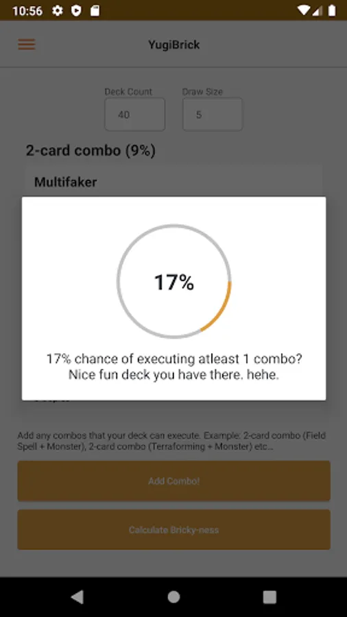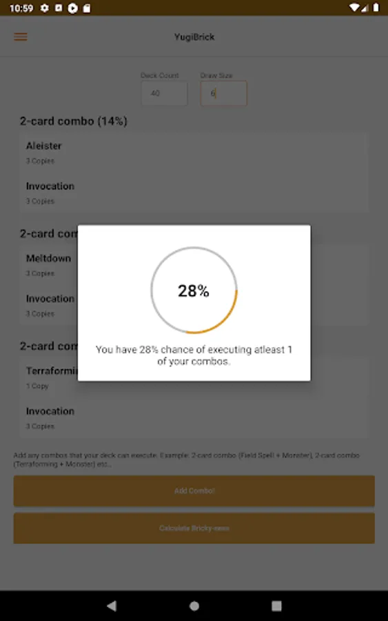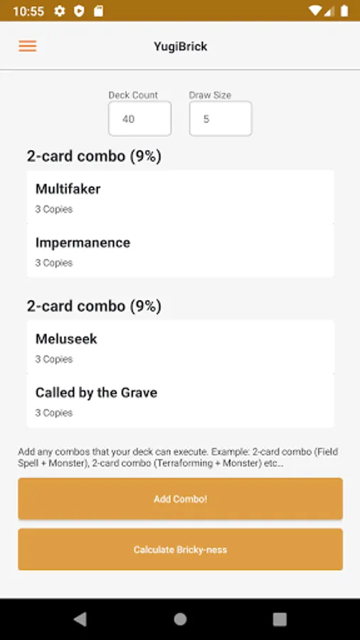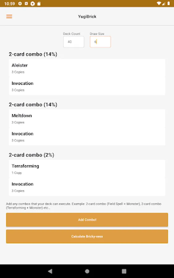 Calculates your Yu-Gi-Oh deck bricky-ness using Math (Probability).