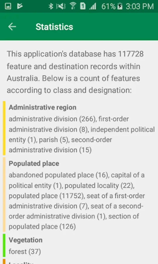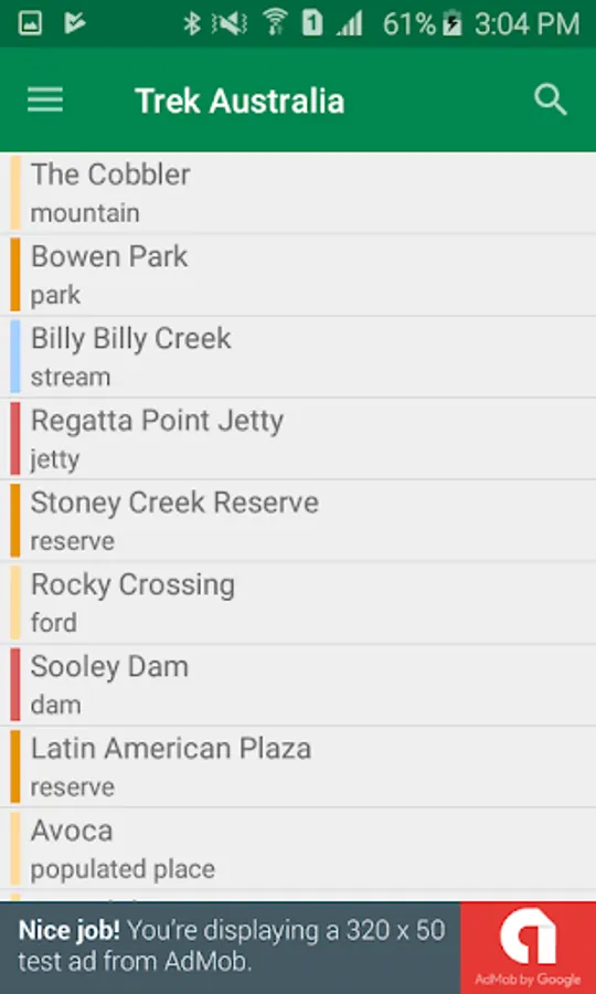 Trek Australia application is a hiker's guide to geographic points of interest within Australia. You will be able to search for, locate, and maybe even visit, 117728 interesting spots and features within the country.