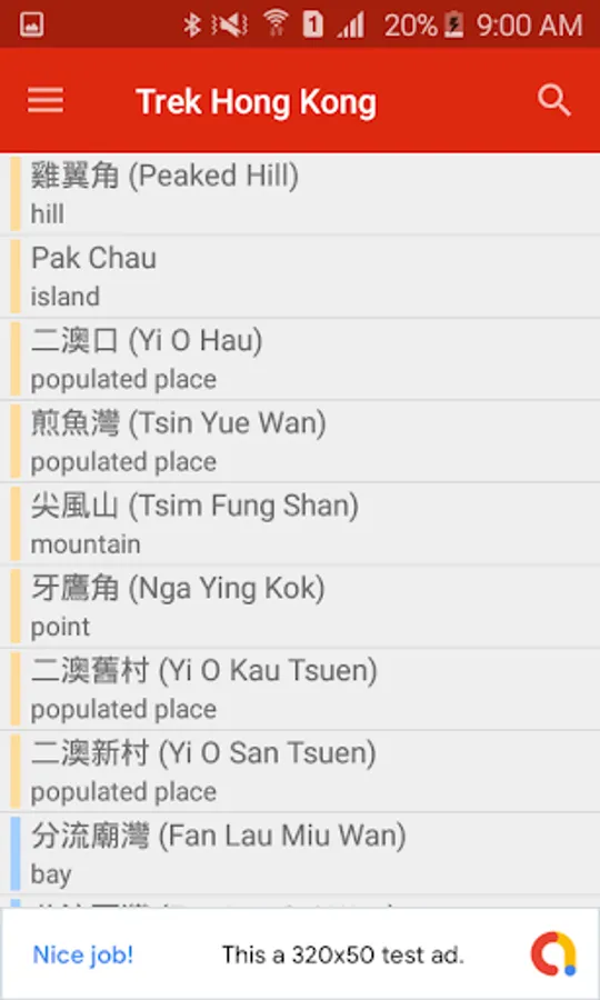 Trek Hong Kong application is a hiker's guide to geographic points of interest within Hong Kong. You will be able to search for, locate, and maybe even visit, 1826 interesting spots and features within the country.