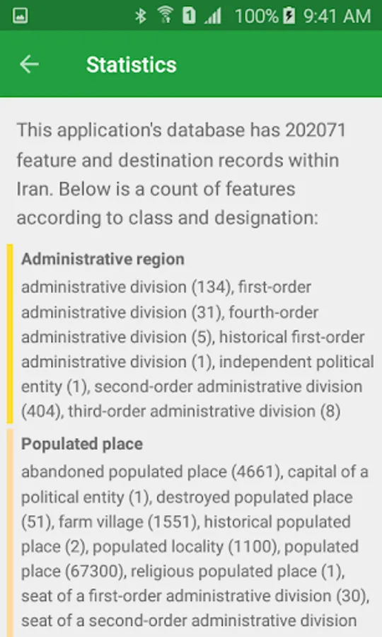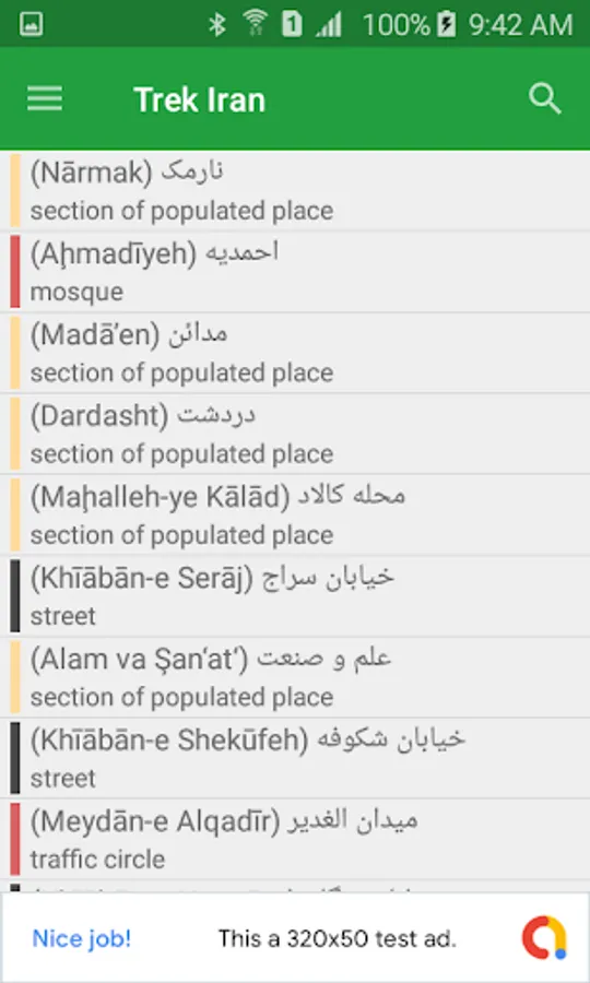 Trek Iran application is a hiker's guide to geographic points of interest within Iran. You will be able to search for, locate, and maybe even visit, 202071 interesting spots and features within the country.