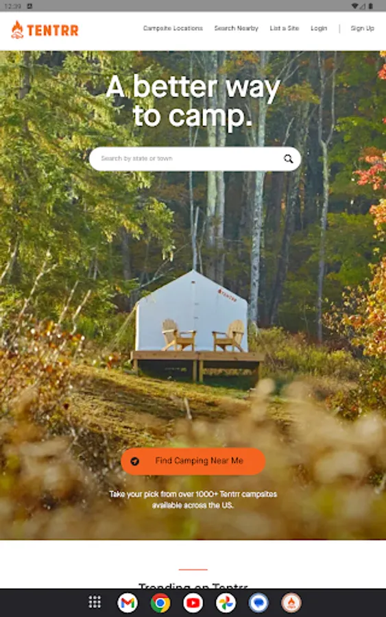 Tentrr makes it simple to discover outdoor experiences. We take the hassle out of getting outdoors, so you can relax, recharge and run free with the world’s largest network of private campsites.