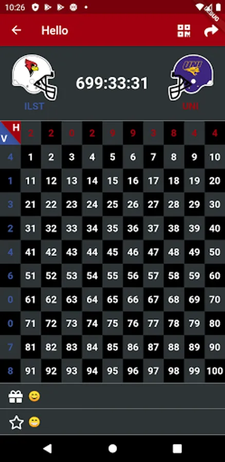 Here's how the game works: Players will place their bet on any of the 100 squares. Once the game starts, the randomized numbers (0 - 9) will be generated on each axis, and the person who has the square that matches the last digit of each team's score is the winner of the pool.